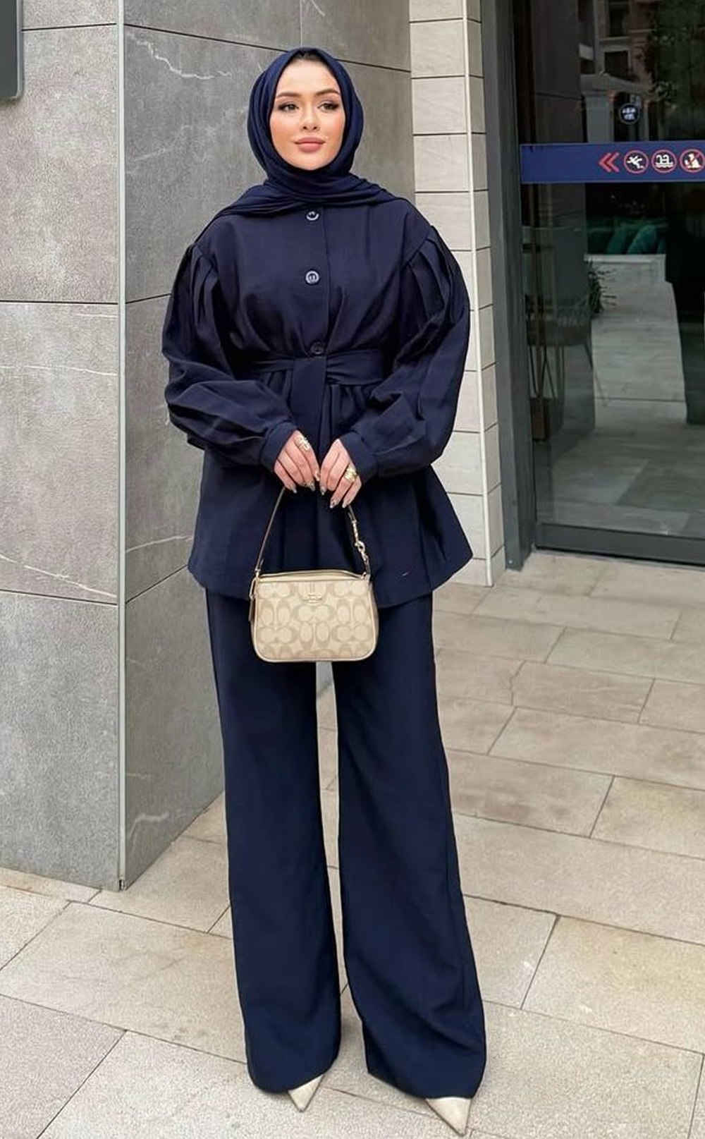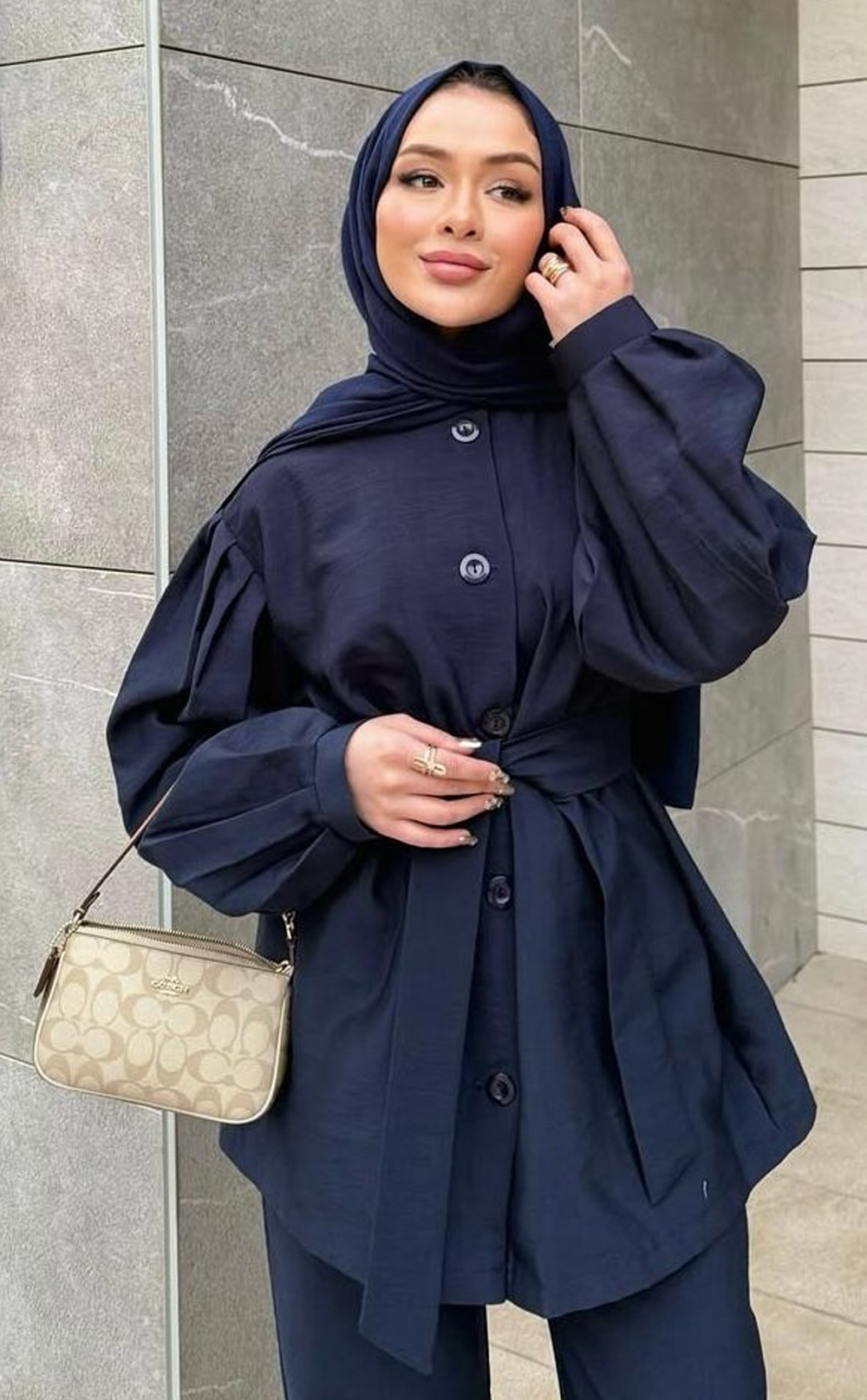 Lacivert rengin asaletini taşıyan bu ikili takım, kol kısmındaki pilise detaylarıyla modern bir hava katıyor. Rahat kalıbı sayesinde gün boyu konfor sunarken, hem günlük hem de ofis kullanımına uygun şık bir alternatif olarak öne çıkıyor. Takım formu sayesinde kolayca kombinlenebilir, stilinize zarif bir dokunuş ekler.